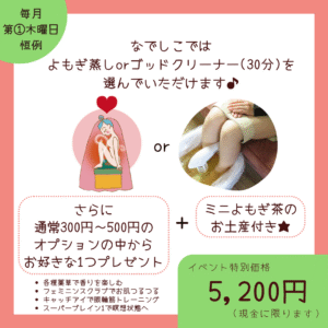 15:00~よもぎ蒸しorゴッド30
