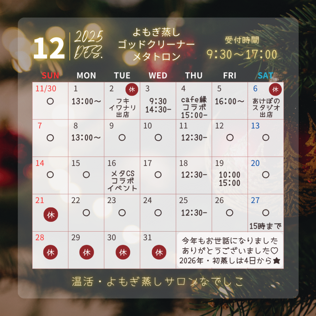 | サロン名 | 温活・よもぎ蒸しサロン なでしこ |